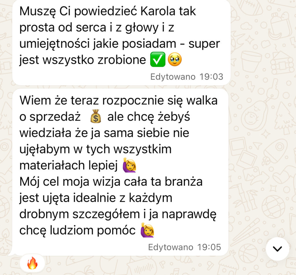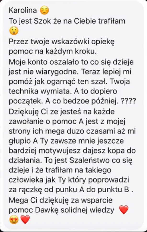 Przez ostatnie 5 lat testowałam dziesiątki rozwiązań w MLM, projektach faceless i profilach marek, aż stworzyłam system, który działa nawet wtedy, gdy Ty śpisz. Moje klientki oszczędzają po kilkanaście godzin tygodniowo i notują wzrost sprzedaży od 30 do 70%. Teraz ten system oddaję w Twoje ręce, żebyś mogła zarabiać więcej, mając czas na rodzinę, podróże i rozwój biznesu – bez rezygnacji z pieniędzy. Przetestowałam go na sobie i moich klientkach – teraz możesz korzystać z niego Ty.